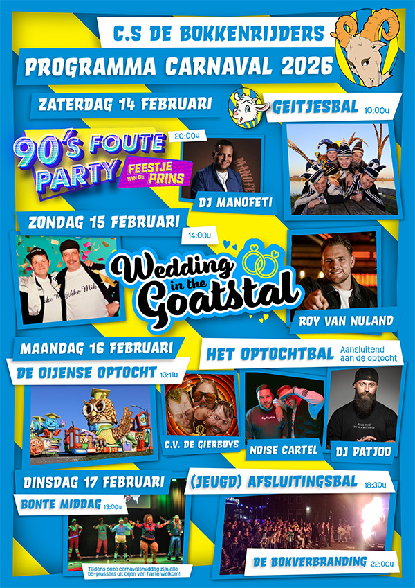 De prijsuitreiking van de Oijense Optocht vindt, aansluitend aan de optocht, plaats in d’n Bokkenstal tijdens het groot optochtbal waar C.V. De Gierboys, Noise Cartel & DJ Patjoo de stemming tot ongekende hoogte zal brengen!