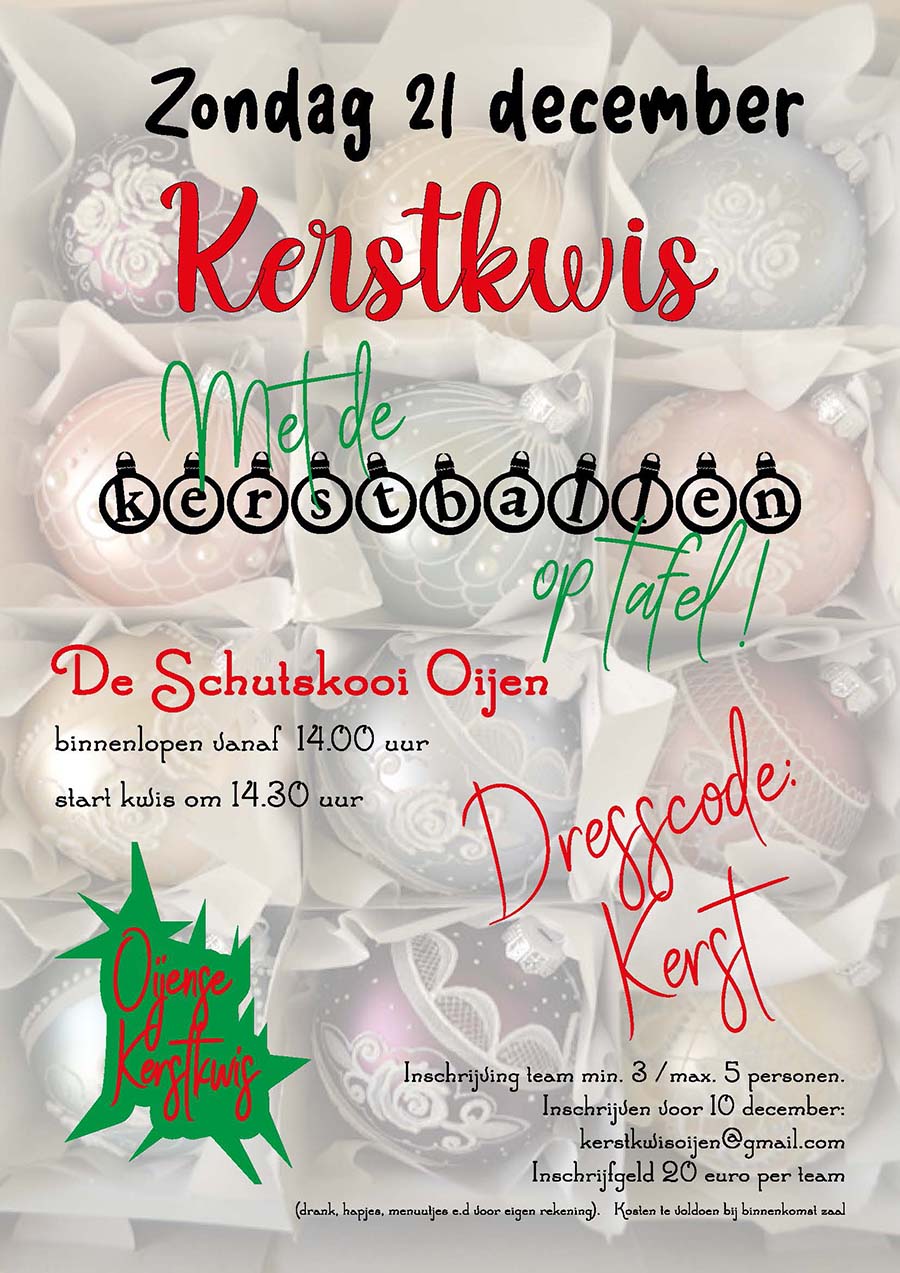 Kerstmiddag Wat: Een Kerstmiddag voor Oijense Ouderen Waar: ’t Hart van Oijen Datum: Zaterdag 13 december van 14.00 tot ongeveer 17.45 uur Programma: Ontvangst met koffie/thee en gebak, Kerstkoor, Muzikale intermezzo’s, Verhalenvertellers, een buffet en nog meer. Laat u verrassen! Organisatie: Een groepje enthousiaste dorpsgenoten, verschillende vrijwilligers. Kosten: € 12,50 p.p. Ondersteuning: Deze middag wordt […]