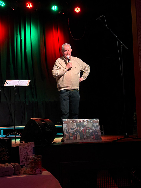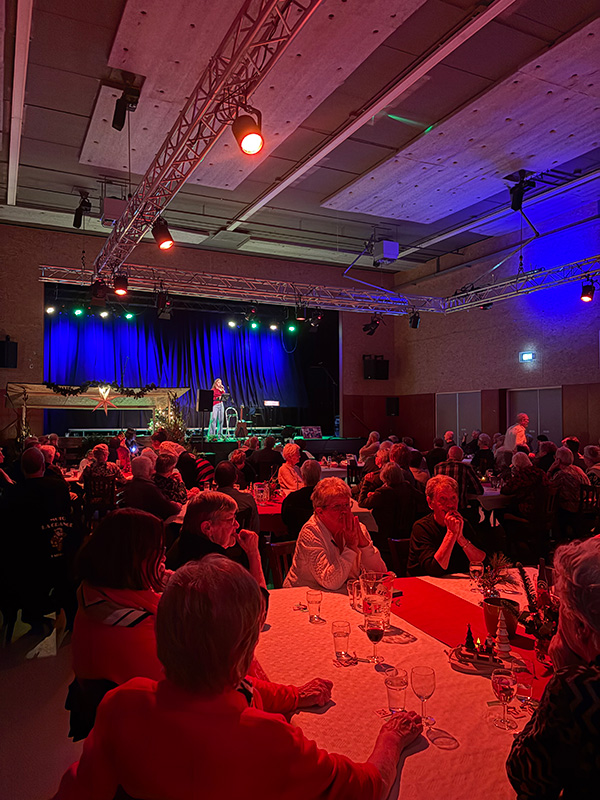 Het Dickenskoor uit Oss zorgde met traditionele kerstliederen voor een warme kerstsfeer. Daarnaast trad ons lokaal talent Amber Eggenkamp op met eigentijdse nummers en bekende kerstklassiekers, waaronder Last Christmas en Rocking Around the Christmas Tree. Als afsluiting bracht Appie een kort humoristisch kerstverhaal.