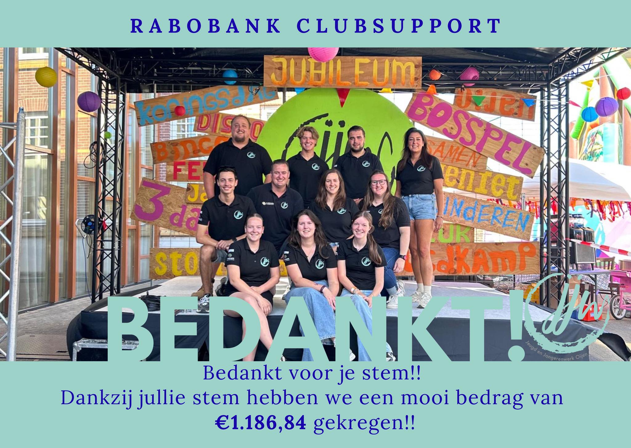 Dankzij jullie stem bij de RaboClubSupport actie hebben we een mooi bedrag van € 1.186,84 gekregen!